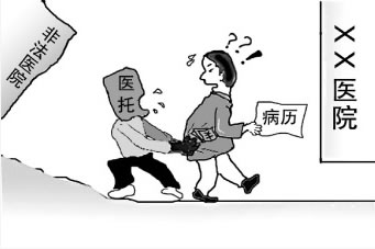 医托实质上是医疗骗子,他们经常出没于汽车站、火车站、地铁口、正规医院附近及周边旅馆,他们通常用带路、同行等欺骗手段,引诱患者到一些无医疗资格的小诊所、非正规医院去看病,并对患者及其家属进行恐吓、敲诈、甚至抢夺财物。
