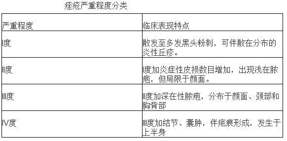 国际上根据病情轻重采用PiLLsbury分类法将“痘痘”分为I—IV度。